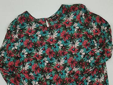 Bluzka damska w kwiaty, rozmiar 38. - Kolor: butelkowa zieleń z różowymi, żółtymi i niebieskimi kwiatami - Fason: lekko luźny, okrągły dekolt - Rękawy: 3/4 z marszczeniem i wiązaniem przy mankieta...