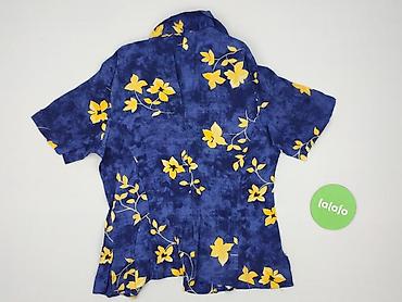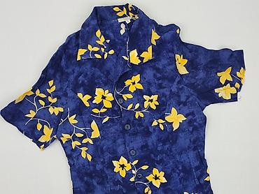 Damska koszula/bluzka z krótkim rękawem w kwiatowy print. - Kolor: granatowy z kremowymi i brązowymi motywami kwiatów oraz geometrycznymi wzorami - Krój: dopasowany, z pionowymi cięciami modelując...Rozmiar: