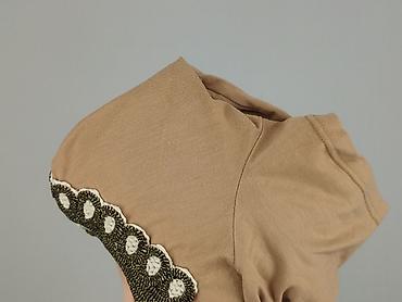 Bluzka damska z krótkim rękawem, beżowa, z ozdobnymi aplikacjami - Fason: dopasowany, krótki rękaw - Golf/kołnierz typu stójka z tyłu zapinany na krótki zamek - Materiał elastyczny, miękko układaj...
