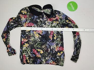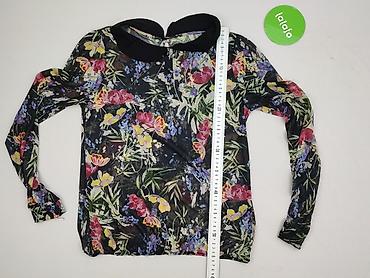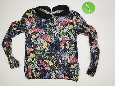 Bluzka damska z kwiatowym printem - Fason: lekko taliowana, z delikatnie zaokrąglonym dołem - Rękaw: 3/4 - Dekolt: okrągły - Rozmiar z metki: M - Wzór: duże, malarskie kwiaty w odcieniach błękitu,...