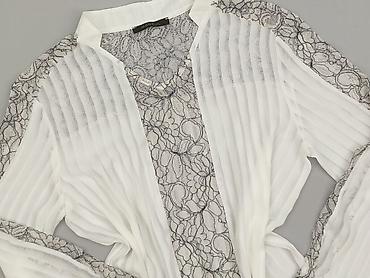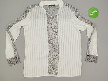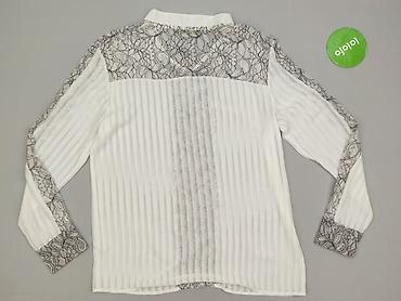 Damska bluzka koszulowa z koronką, biała, rozmiar M. - Fason: klasyczny, zapinany na guziki z przodu - Kołnierz: stójka z delikatnym, ząbkowanym wykończeniem - Rękawy: długie, wstawki z ażurowej k...