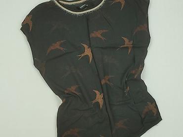 Bluzka damska Reserved, rozmiar 38 - Kolor: czarny - Fason: prosty, lekko dopasowany - Rękaw: krótki/kimonkowy z delikatną, półprzezroczystą wstawką na ramionach - Dekolt: okrągły - Ozdoby: rząd m...