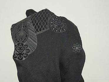 Damski sweter/bluzka z długim rękawem - Kolor i wzór: czarne tło w białe grochy, bogate kwiatowe aplikacje z przodu przy dekolcie, na ramionach oraz na mankietach; część kwiatów zdobiona cekinami....