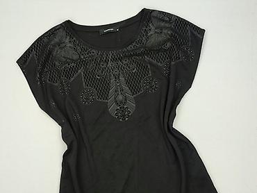 Bluzka damska RESERVED, rozmiar M - Kolor: czarny - Fason: prosta bluzka z przedłużanym, półprzezroczystym dołem - Rękaw: 3/4 - Dekolt: okrągły - Materiał: 100% poliester (zgodnie z metką) - Przew...