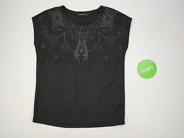 Bluzka damska House, rozmiar M. - Fason: luźny T‑shirt z krótkim rękawem typu kimono (lekko opadające ramiona), okrągły dekolt. - Wzór: wyrazisty, kwiatowy print na czarnym tle – róże i liście w o...