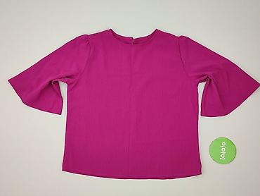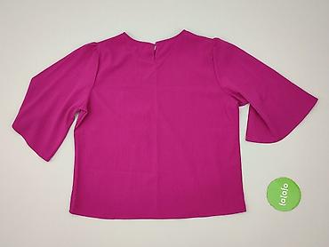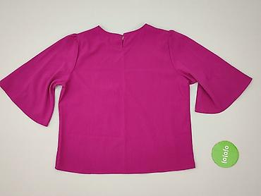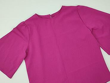 Bluzka damska w kolorze intensywnego fuksji. - Krój: luźny, z marszczeniem pod dekoltem - Dekolt: szeroki, zaokrąglony - Rękaw: do łokcia - Rozmiar z metki: M - Skład materiału: 96% wiskoza, 4% el...