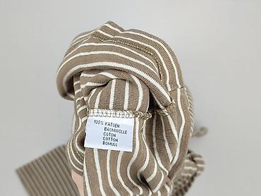 Bluzka damska z długim rękawem, w paski - Krój: luźny, z zaokrąglonym dołem (tył delikatnie dłuższy) - Dekolt: łagodnie zaokrąglony - Rękaw: długi - Wzór: poziome paski w odcieniu beżowo‑złotym na...