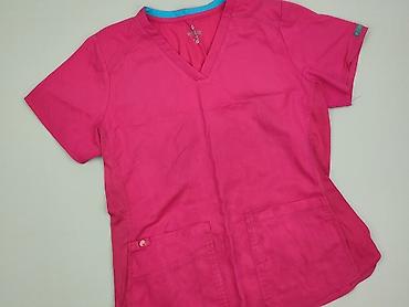 Bluzka medyczna damska TM PROGRESS – model Fartuch ULA, rozmiar M. - Kolor: intensywny róż/fuksja - Krój: taliowany, z krótkim rękawem; dekolt w kształcie łezki - Materiał: 65% poliester, 35% bawe...