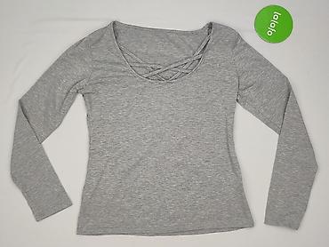 Szara bluzka z długim rękawem dla kobiety - Krój: klasyczny, okrągły dekolt - Rękaw: długi - Kolor: melanż szary - Rozmiar z metki: L - Skład materiału: 65% bawełna, 35% poliester (widoczny na met...