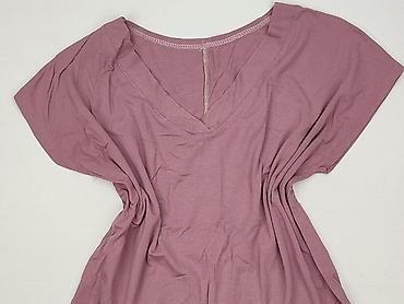 Bluzka damska MyWear Woman, rozmiar S. - Model z półprzezroczystej siateczki/meshu - Kolorystyka: różowo‑śliwkowy print w kwiatowy, akwarelowy wzór - Krój prosty, długość do bioder - Okrągły dekol...