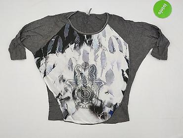 Bluzka damska z długim rękawem marki Mariquita, rozmiar M. - Kolor: melanż szary. - Dekolt: okrągły. - Przód zdobiony dużym nadrukiem z profilem kobiety i napisem „Fabulous” wysadzanym aplikacjami...
