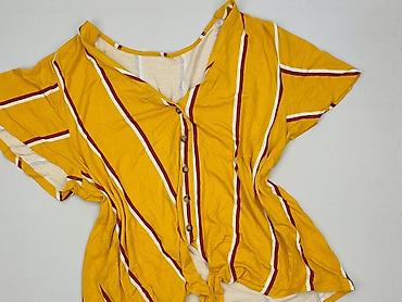 Bluzka damska w paski, musztardowa - Krój: luźny, swobodny, długość do bioder - Dekolt/ramiona: hiszpański krój z elastyczną gumką wokół dekoltu; można nosić na ramionach lub lekko opuszczoną - Rę...Rozmiar: