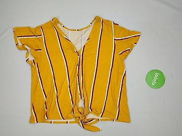 Bluzka damska w paski, rozmiar EU 42 (UK 14). - Krój: luźny, z krótkim rękawem i okrągłym dekoltem - Zapięcie: rząd guzików na plecach - Wzór/kolor: poziome pasy w odcieniach błękitu, musztardoweg...
