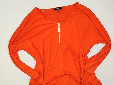 Bluzka damska, pomarańczowa, rozmiar 3XL - Krój luźny, lekko przedłużony tył (zaokrąglony dół) - Dekolt w serek z krótkim zamkiem błyskawicznym z przodu - Długie rękawy z patkami i guziczkami do p...