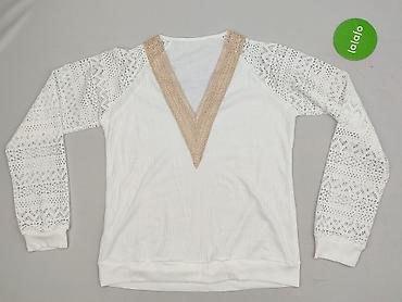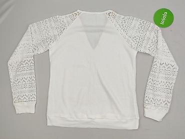 Biała damska bluzka z koronkowymi rękawami - Rozmiar: M (metka na zdjęciu) - Materiał: 100% poliester - Krój: prosty, lekko luźny - Długość rękawa: długi - Rękawy i ramiona z delikatnej koronki o ...