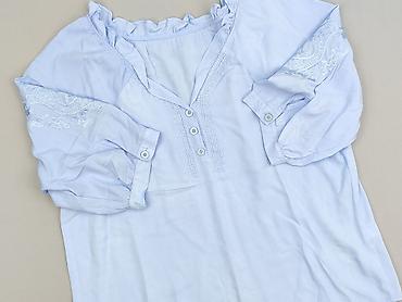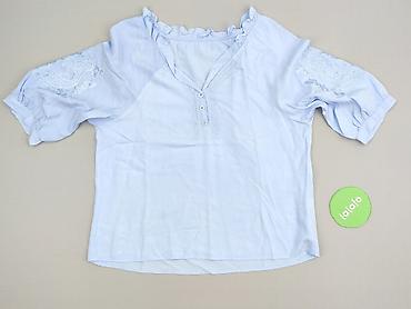Bluzka damska Cocomore, rozmiar M - Krój: taliowana, z dekoltem w kształcie litery V i kołnierzykiem - Rękaw: krótki, z lekkim marszczeniem przy ramieniu - Wzór: paski w odcieniach błękitu, niebie...