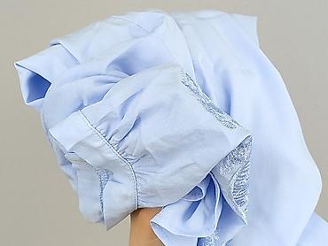 Bluzka damska z krótkim rękawem, rozmiar L - Kolor: chabrowy/niebieski z białym, kwiatowym wzorem - Krój: dopasowany, elastyczny; dekolt karo z falbanką, krótkie rękawy z falbanką i dekoracyjnymi ...