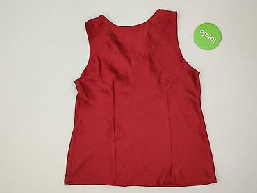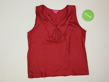 Bluzka damska bez rękawów, rozmiar L - Krój: lekko rozszerzany, luźny, z dekoltem w kształcie litery V i stójką - Wzór: drobny, nieregularny nadruk w białe motywy na czerwonym tle - Materiał: 100%...Rozmiar: