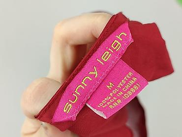 Bluzka damska SHEIN, rozmiar M (EUR/USA M). - Kolor: bordowy. - Krój: lekko luźny, dekolt w serek. - Rękawy: krótkie z delikatnym marszczeniem i gumką przy mankiecie. - Ozdoby: aplikacje z pere...