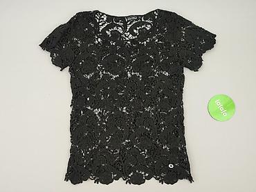 Bluzka damska Matsui, rozmiar M - Kolor: czarny - Krój: dopasowany, z szerokim dekoltem łódkowym - Rękawy: krótkie, koronkowe w formie ażurowych wstawek - Materiał: miękka, elastyczna dzianina (pr...