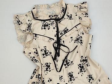 Bluzka damska w kolorze beżowym - Fason: luźny, z zaokrąglonym dołem (dłuższy tył), krótki rękaw z delikatną falbanką - Dekolt: okrągły z pęknięciem i zapięciem na guzik z tyłu - Materiał: 100% po...