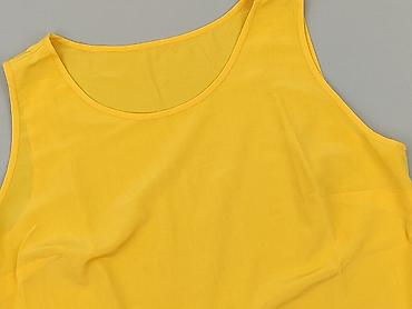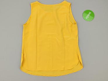 Żółta bluzka damska bez rękawów - Rozmiar z metki: 38 - Krój: luźny, lekko zaokrąglony dół, przedłużony tył, delikatnie opadające ramiona (cap sleeves) - Dekolt: w kształcie litery V - Materiał: c...Rozmiar:
