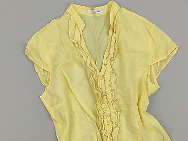 Bluzka damska Reserved (linia YFL) - Kolor: musztardowy/żółty - Rozmiar z metki: 36 - Krój: luźny, lekko rozszerzany - Rękawy: krótkie, swobodne - Dekolt: stójka/kołnierzyk z pęknięciem i zapięcie...