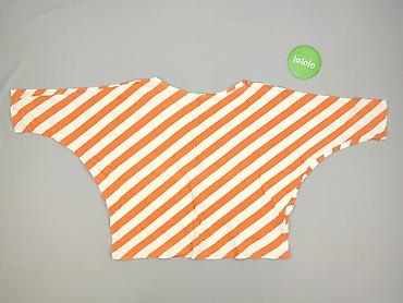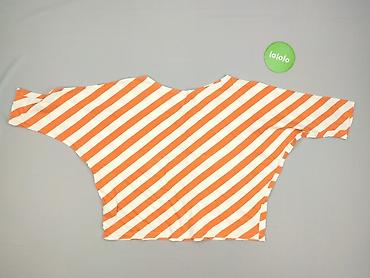 Bluzka damska O&S - Fason: luźny, z krótkim rękawem typu kimono; asymetryczna linia ramion - Wzór: szerokie pasy w kolorach pomarańczowym, granatowym i białym; w strukturze materiału drobny nadruk...