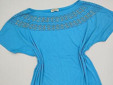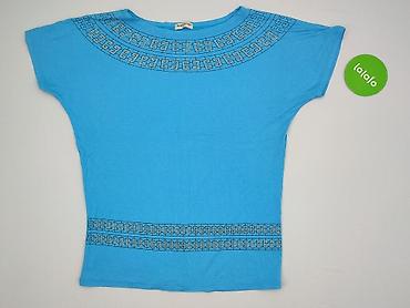 Bluzka damska, rozmiar M. - Fason: dopasowany, z dekoltem w kształcie litery V - Rękaw: krótki - Materiał: cienka, lekko transparentna, elastyczna dzianina (miękka i przewiewna) - Wzór/kolor: nieb...