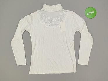 Bluzka damska z długim rękawem, biała, z koronką - Krój: prosty, lekko luźny, okrągły dekolt - Rękawy: długie - Zapięcie: półguziki z tyłu pod szyją - Detale: bogate, ażurowe wstawki koronkowe z p...