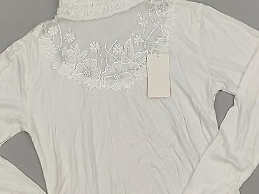 Bluzka damska G.T.T, biała, z długim rękawem - Elegancki model z haftowanym, koronkowym panelem z przodu - Marszczone/plisowane rękawy zakończone mankietem - Ozdobny kołnierzyk: perły i aplikacje ...