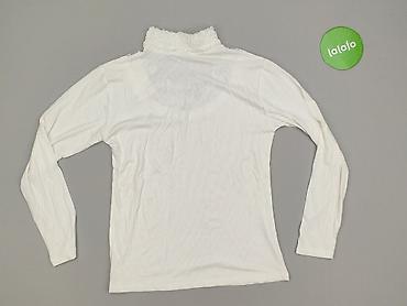 Biała bluzka damska M/L, Made in Britain - Krój: prosty, z krótkim rękawem i okrągłym dekoltem - Rozmiar z metki: M/L - Skład materiału: 95% poliester, 5% elastan – miękka, elastyczna dzianina o d...