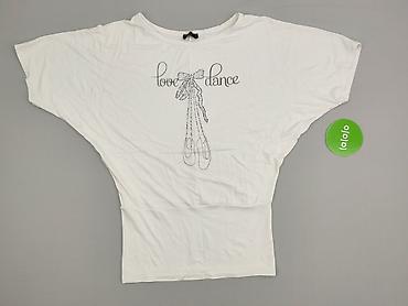 Bluzka damska Blind Date Women - Rozmiar z metki: 34 - Kolor: biały - Krój: luźniejszy, nietoperzowe rękawy 3/4, dół zakończony szerszym ściągaczem - Dekolt: łódka - Nadruk z przodu: duży napis „W...