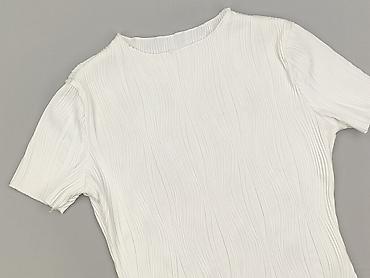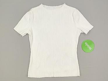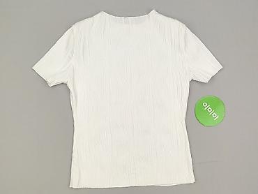 Biała damska bluzka z krótkim rękawem (do łokcia) i okrągłym dekoltem. Gładka, bez nadruków i aplikacji – klasyczny, dopasowany fason. - Rozmiar: S (z metki) - Skład materiału: 95% poliester, 5% e...