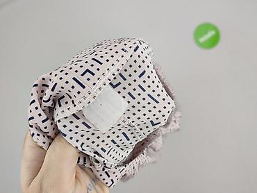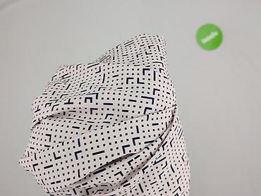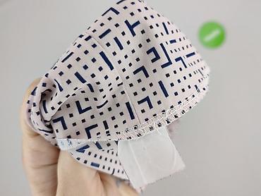 Bluzka damska, rozmiar M. - Krój: prosty, z okrągłym dekoltem. - Rękawy: krótkie, podwójnie falbaniaste. - Wzór: geometryczna mozaika w kolorach granatowym, białym, jasnoróżowym i jasnoszarym. ...