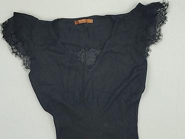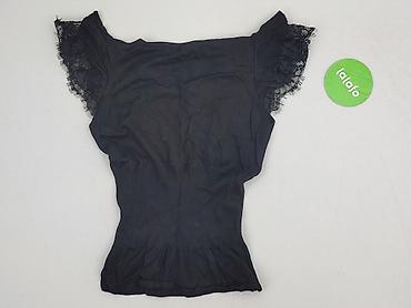 Czarna bluzka damska Sinsay - Rozmiar: S - Krój: dopasowany, prążkowany materiał - Rękaw: krótki - Dekolt: w kształcie łagodnego V z delikatną koronką - Długość: do bioder - Kolor: czarny - Materi...