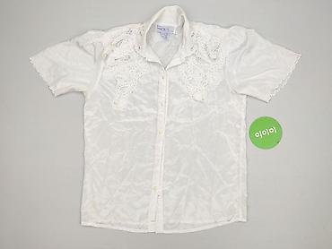 Biała damska bluzka Made in Italy, rozmiar M - Fason: luźny, lekko wydłużony tył (zaokrąglone wykończenie dołu), długi rękaw z szerokim mankietem - Kołnierzyk: klasyczny, ozdobiony subtelną lamówk...