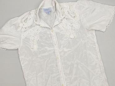 Bluzka damska Les étoiles claires Paris, rozmiar M/L. - Kolor: biały - Krój: lekko dopasowany, krótki rękaw - Dekolt w kształcie litery V z dekoracyjnym krótkim suwakiem z przodu - Przód z koronko...