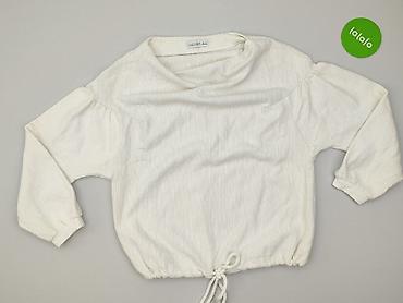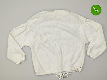 Biała damska bluzka z długim rękawem, zwiewna, z plisowanym dołem i przodem. - Krój: luźny, z okrągłym dekoltem; dół wydłużony, lekko zaokrąglony; rękawy zakończone delikatną gumką/falbanką. - Det...Rozmiar: