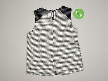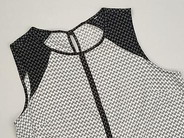 Bluzka damska bez rękawów z geometrycznym wzorem - Krój: luźny, lekko przedłużony tył (asymetryczny dół) - Dekolt: półgolf z czarną lamówką; zapięcie z tyłu na guzik/pętelkę - Wzór: czarno-białe, ...