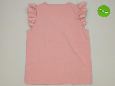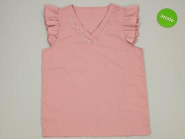 Bluzka damska bez rękawów w kolorze jasnoróżowym. - Rozmiar: M - Fason: lekko dopasowany, dekolt w serek - Rękawki: krótkie, falbaniaste - Materiał: ażurowa, przewiewna dzianina z delikatnym wzore...
