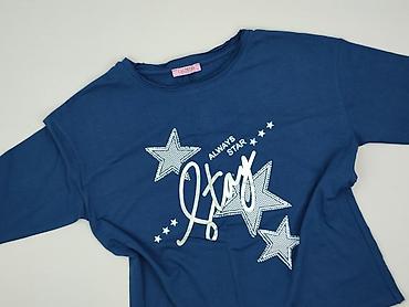Bluzka damska z długim rękawem, granatowa - Fason: lekko luźny, z elastycznym dołem - Dekolt: okrągły - Rękawy i karczek: koronkowe w ażurowy wzór z kółkami - Materiał korpusu: miękki, cienki dżer...