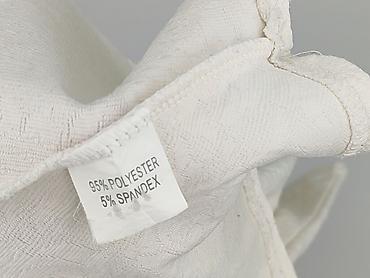 Bluzka peplum H&M - Kolor: biały - Krój: dopasowana góra z panelami, rozkloszowana falbana peplum - Dekolt: w serek (V-neck) - Rękaw: krótki - Materiał: 100% poliester, elastyczna, prążkowana dzi...
