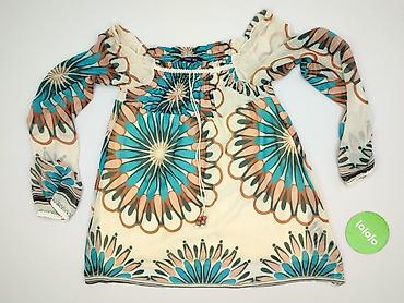 - Wzór: duże, kwiatowe rozety w odcieniach turkusu, beżu, brzoskwini i czerni; dekoracyjne kontrastowe lamówki przy mankietach
