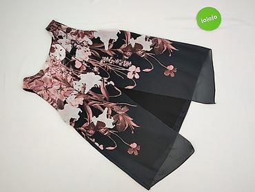 Bluzka bez rękawów w kwiaty – damska - Rozmiar: M (metka) - Krój: bez rękawów, z dekoltem w serek z niewysoką stójką; lekko zaokrąglony dół - Wzór: czarne tło z kwiatowym nadrukiem (odcienie bieli...