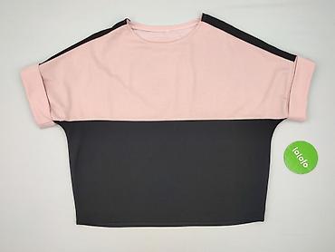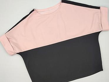 Bladoróżowa damska bluzka oversize z krótkim rękawem - Krój: luźny, lekko pudełkowy; opuszczona linia ramion - Dekolt: okrągły - Dół: szeroki ściągacz z subtelnym marszczeniem z przodu, nadaje ksz...