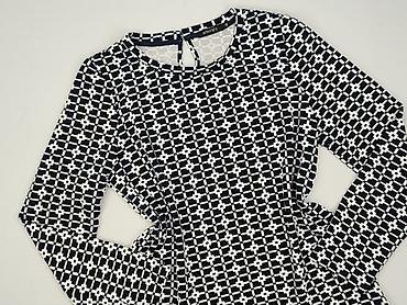 Bluzka damska Blue, rozmiar 38 - Wzór: granatowe tło w białe, nieregularne kwadraty - Krój: luźny, z długim rękawem; dekolt łódka; dół wykończony delikatnym ściągaczem, który ładnie układa materia...