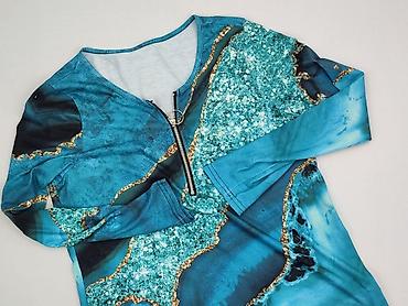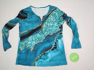 Bluzka damska z długim rękawem, rozmiar L. - Kolor: turkus/teal - Krój: luźniejszy, lekko wydłużony tył; dekolt w serek (V-neck) - Detale: zakładka na przodzie i na plecach, rękawy zakończone manki...