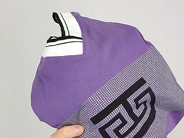 Fioletowa bluzka damska BELoVED Woman - Rozmiar z metki: M - Krój: luźny, lekko oversize z opadającą linią ramion - Dekolt: okrągły - Rękawy: krótkie z ozdobnymi, pętelkowymi wycięciami przy ramio...
