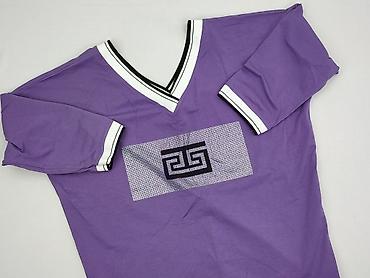 Fioletowa bluzka damska Everyday Wear - Rozmiar: XL (z metki) - Krój: luźniejsza góra z krótkim rękawem typu kimono, lekko opadający dekolt - Długość: klasyczna, do bioder - Kolor: głęboki fiolet ...